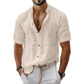 Men's Lapel Shirt - Linen Blend - Relaxed Fit - Short Sleeve - Pocket