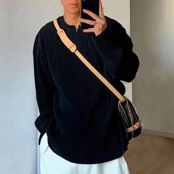 Men's Long Sleeve T-Shirt - Ribbed Knit - Relaxed Fit - V-Neck
