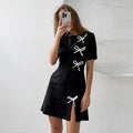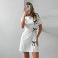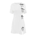 Women's A-Line Dress - Short Sleeve - Round Neck - Bow Detail - Mini