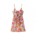 Women's Mini Dress - A-Line - Floral Print - Spaghetti Straps - Ruffle Hem
