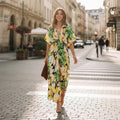 Women's Maxi Dress - Wrap V-Neck - Floral Print - High Waist - Slit
